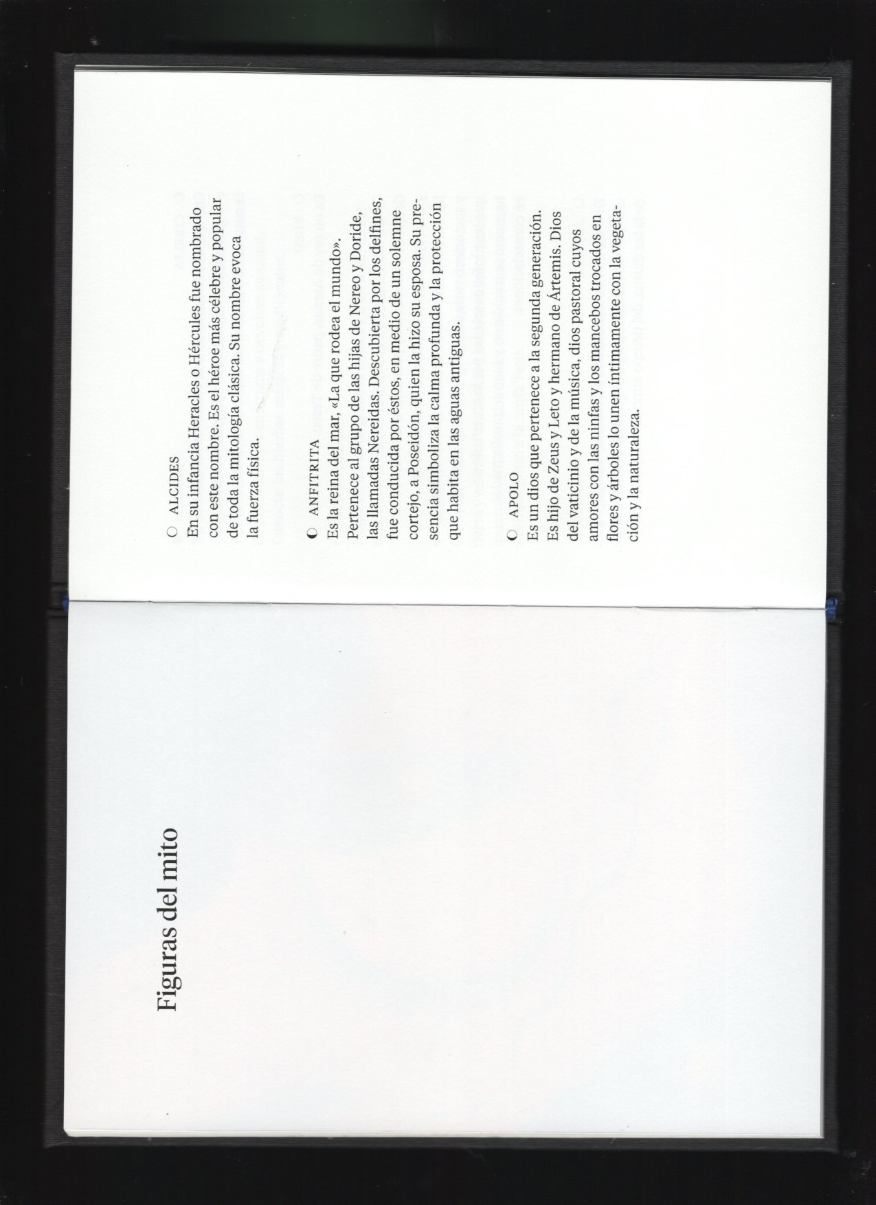 The book is built on a restrained typographic system — generous white space, classical references, and a glossary of mythological figures — giving the text room to unfold without interference.